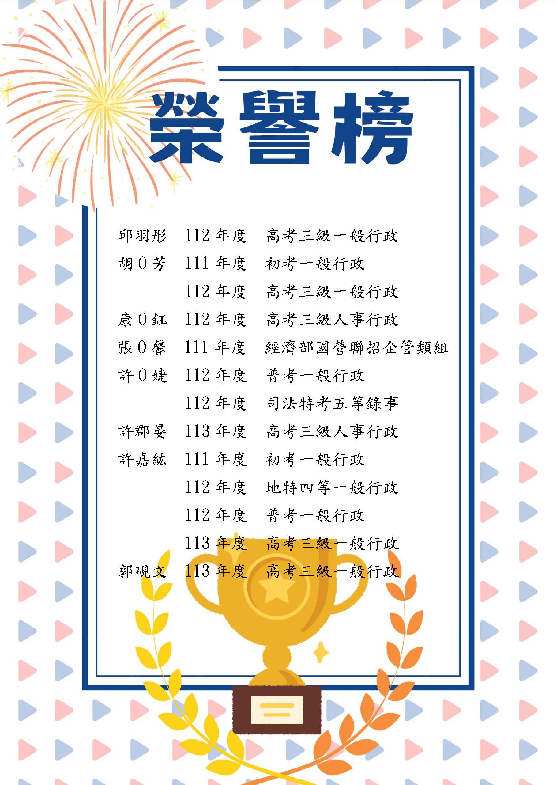 恭喜 王宇杰、陳禹安、黃千芮 三位同學