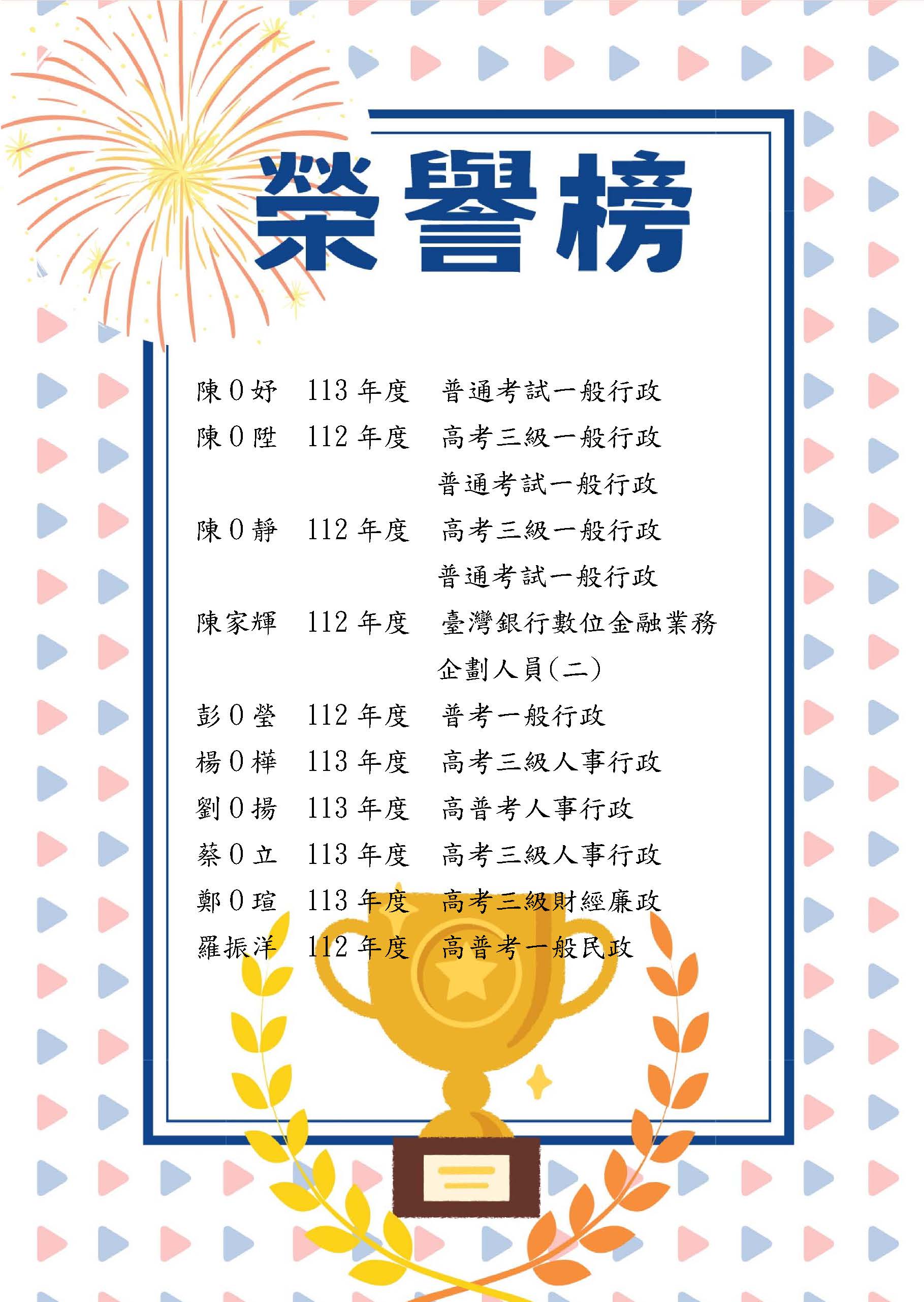 碩士在職專班114學年度第1學期書卷獎 獲獎名單