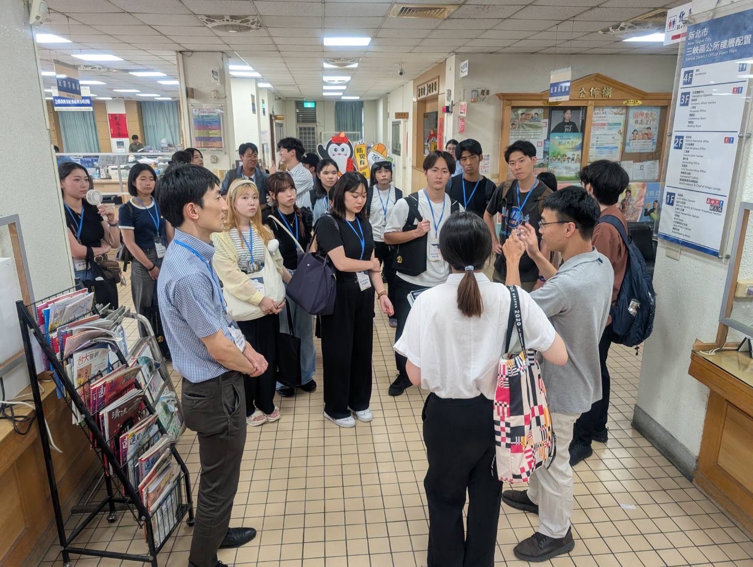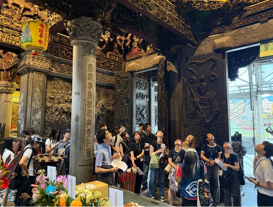下午則安排文化體驗行程,由公行系同學陪同日方師生走訪三峽區公所,透過同仁及本系校友介紹地方政府的組織運作與服務流程,讓早稻田師生理解台灣基層治理的實務。隨後,雙方前往藍染工坊,在專業講師指導下體驗藍染手作,親身感受傳統工藝魅力。最後一同參訪著名的清水祖師廟,藉由導覽老師的解說,深入認識廟宇歷史與建築特色,理解宗教文化在台灣社會凝聚與地方發展中的重要角色。